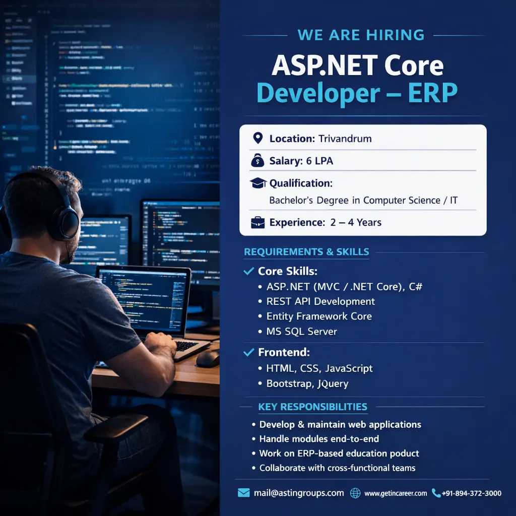 Our collaboration with Astin job Consultancy in palakkad has been highly positive. We are impressed with the quality of service, prompt responsiveness, and their strong understanding of both technical and non-technical hiring needs. Their ability to deliver well-screened, relevant candidates on time makes them a reliable and valuable recruitment partner.